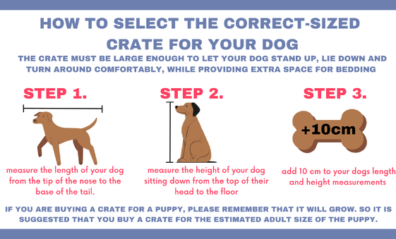 Choosing the right crate size for your dog or puppy is important for comfort and safety. Your dog should be able to stand up, turn around, and stretch out inside the crate. A crate that's too small can be uncomfortable, while one that's too big may not feel secure. Here are two easy ways to find the perfect size crate for your dog.