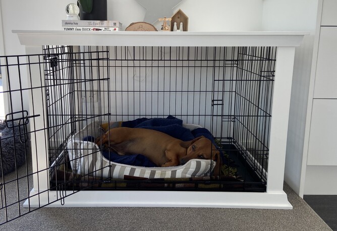 Night time routine: At night, place the crate in your bedroom or nearby so your puppy feels secure and can hear your presence. Create a cozy environment inside the crate by covering the top and sides partially with a lightweight blanket or Crate Cover. This creates a den-like atmosphere and can help reduce visual stimulation, making the crate feel more secure. This will help your puppy feel more at ease and reduce the likelihood of excessive whining or barking. Shop Crate Cover - Made in NZ